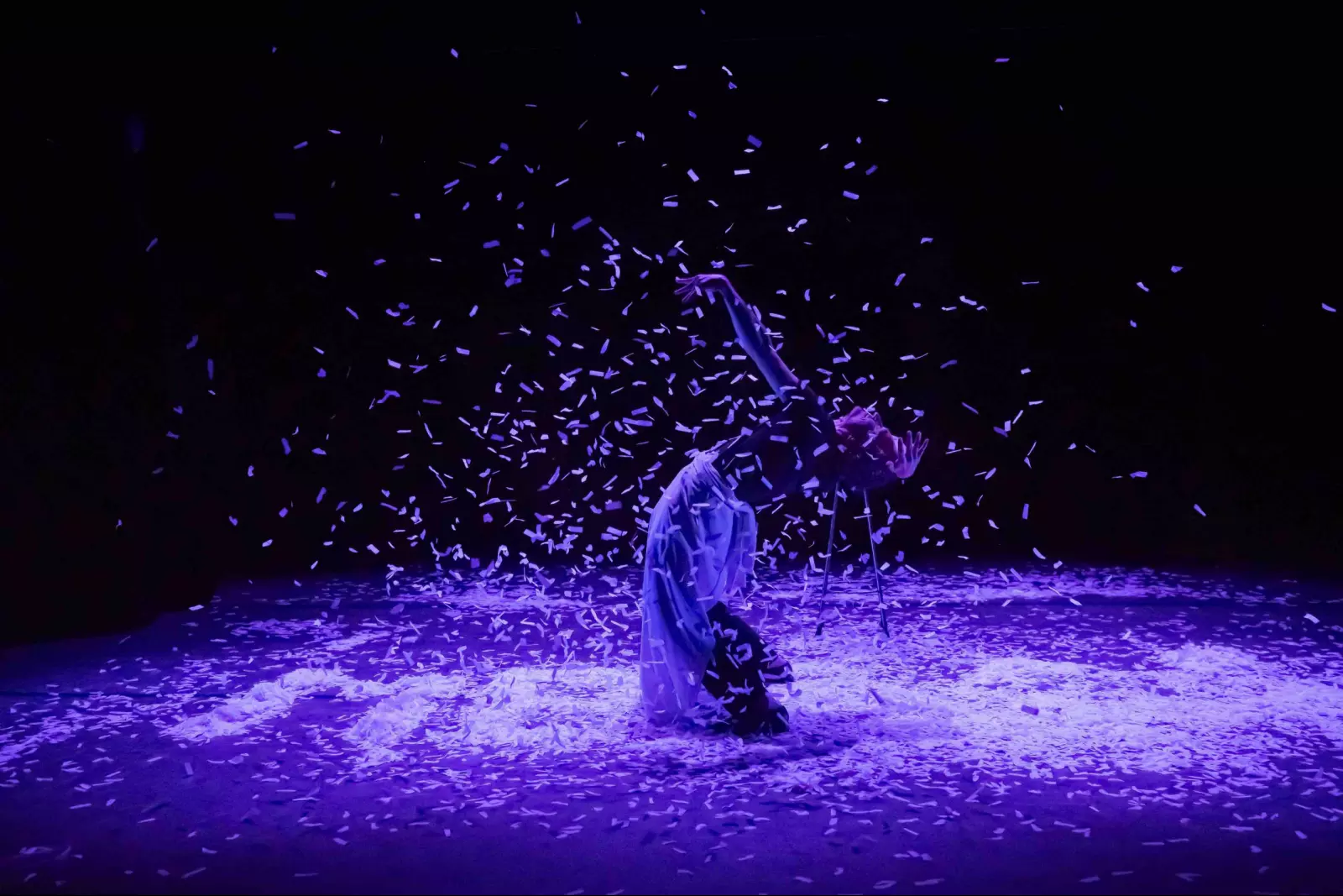 La scénographie, inventive et ingénieuse, sert moins le jeu du comédien pour laisser place à plus de poésie. Les cotillons (joli pied de nez aux paillettes) matérialisent parfois un objet concret, mais ouvrent surtout l’imaginaire des spectateurs.