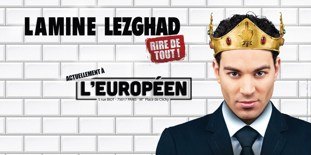 Rions de tout ! est le sous-titre de Lamine Lezghad est le roi des enc…, ce qui à le mérite d’être clair. Donc en arrivant à l’Européen, on sait, grosso modo, à quoi s’attendre. Et en effet, à défaut de classe, il y a de la casse en masse : dézingués les terroristes, les politiques, les noirs, les blancs, les musulmans, les juifs, les catholiques, les pédophiles, les violeurs, les clochards, les trisomiques, les handicapés, les cancéreux, les suicidaires, la concurrence (comme Bigard, Elmaleh, Roumanoff, Foresti, allez, même Sardou, tant qu’à faire, ratisser large ne coûte pas plus cher)…