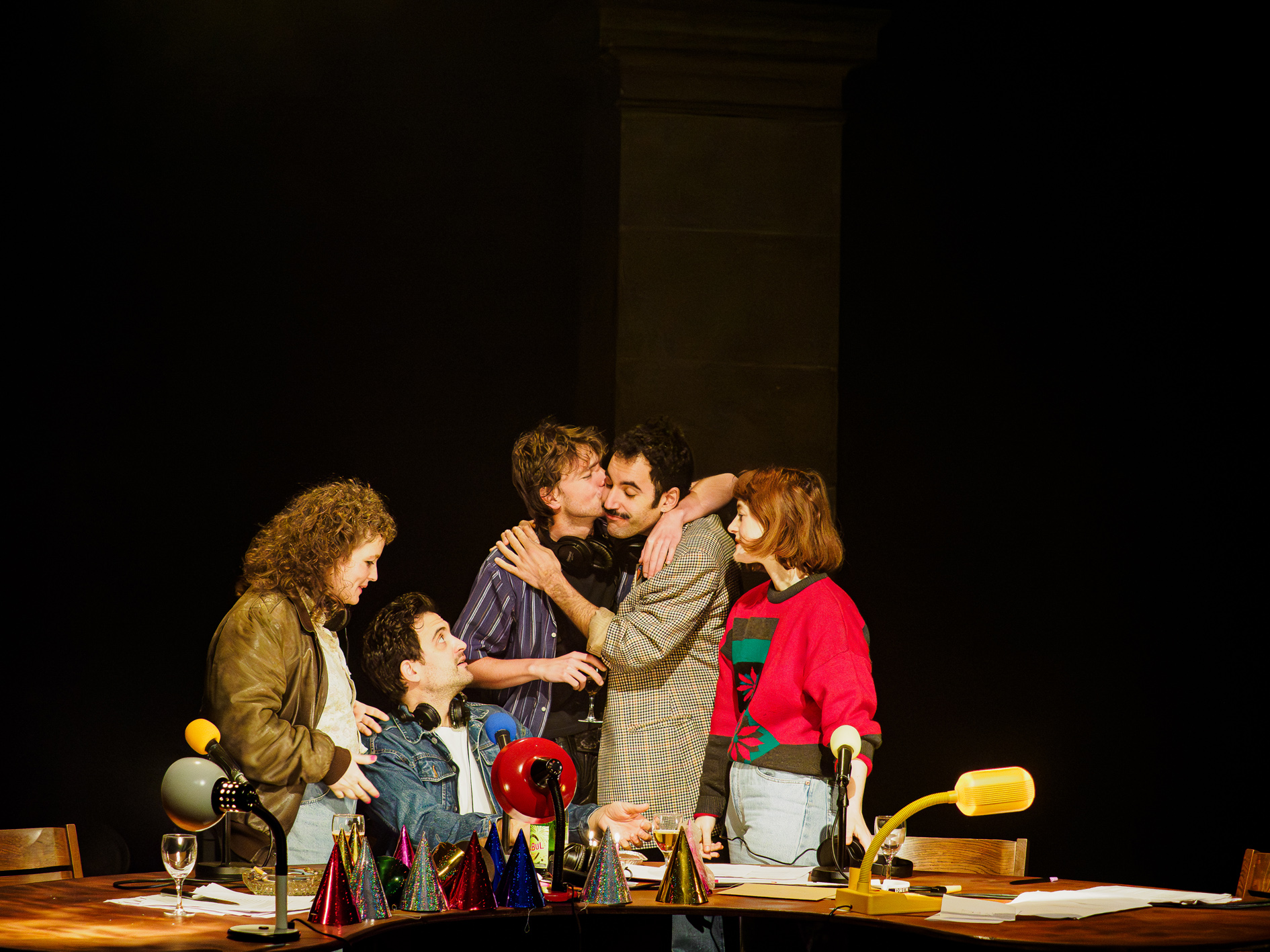 Sur scène, le studio d’enregistrement est reconstitué. Rejouant tour à tour les appels des auditeurs, les cinq interprètes entraînent le public dans les délires et l’humour potache qui faisaient le sel de l’émission. Tout est tourné en dérision, dans une sorte d’exaltation communicative qui dédramatise les propos parfois choquants. Toute la première partie ressemble ainsi à une plongée dans un passé où une frénésie d’expression accompagne la libération sexuelle.