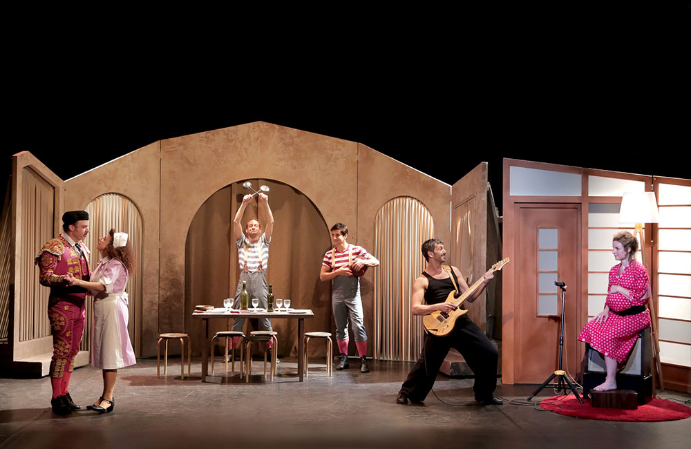 Le décor est habile, qui fait exister les deux lieux (en France et au Japon). Mise en scène fonctionnelle avec moults rapports frontaux au public. Les deux frères sont un peu interchangeables, du moins pas assez bien différenciés à notre goût. Le père (Bernard Malaka) se fige dans des poses. La fiancée est lisse : seuls émergent le fils aîné, joué par Stéphane Dauch et Isabelle de Botton qui donne, surtout vers la fin, une épaisseur, une présence à la mère. On aurait souhaité la même à tous les autres personnages.