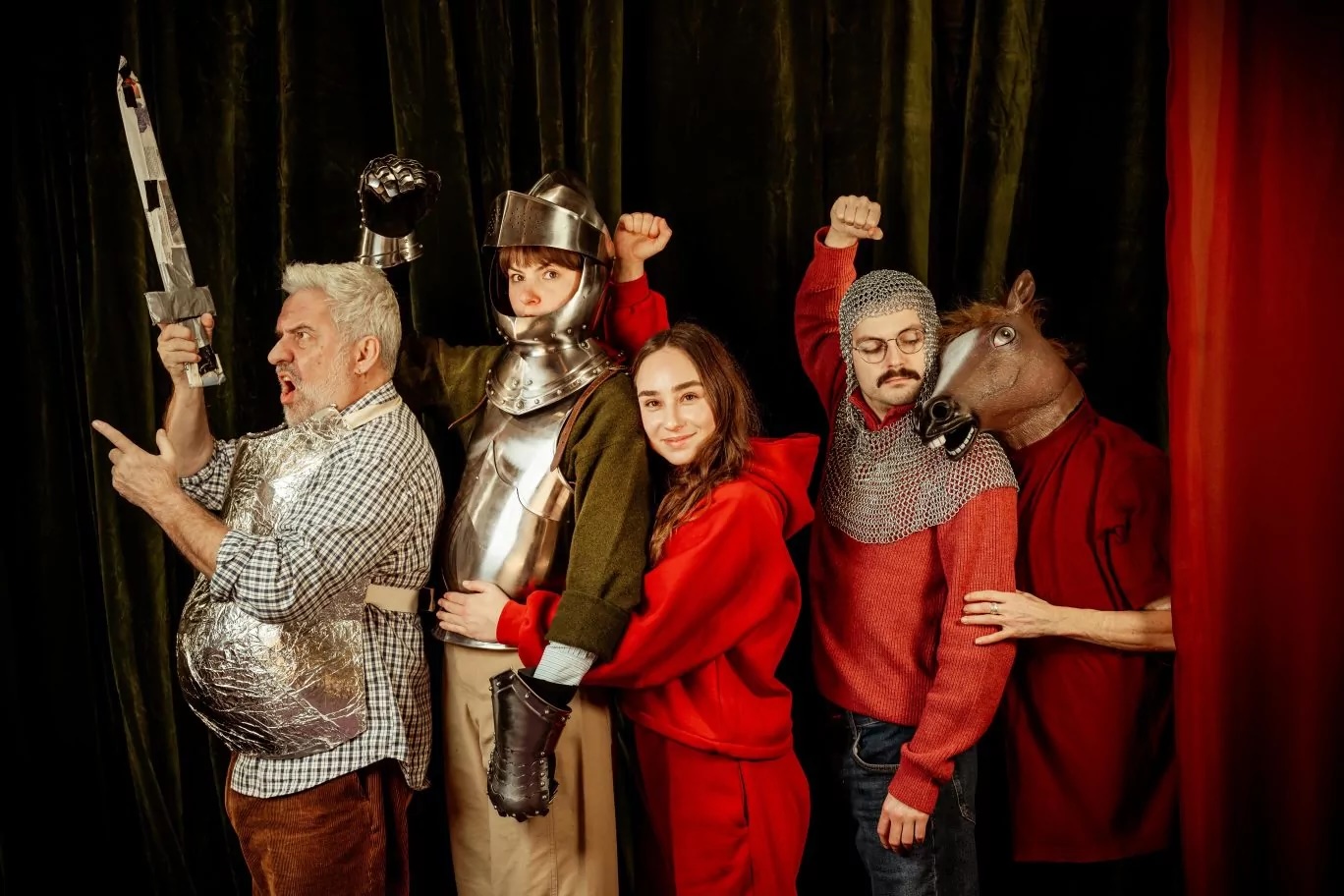 Coiffé d’un plat (contenant encore une préparation à base de mousse), le grand-père change de monde : empoignant une épée en carton, il devient chevalier à la (presque) triste figure. Qu’il entraîne Sacha dans son rêve, passe encore, mais voilà que son fils et sa belle-fille suivent à leur tour, ce qui donne lieu à des moments savoureux.