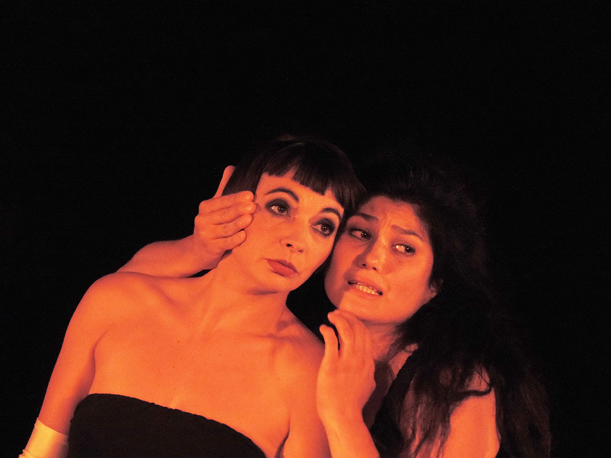 Les références au cinéma muet abondent, les costumes sont en noir et blanc, avec parfois des flashes de rouge, la gestuelle suit, la Violetta d’avant a des allures de Louise Brooks, belle composition pas facile non plus de Fanny Aguado, sur l’écran, image en noir et blanc là aussi, on ne perd pas une miette des sentiments qui agitent la Violetta mourante.